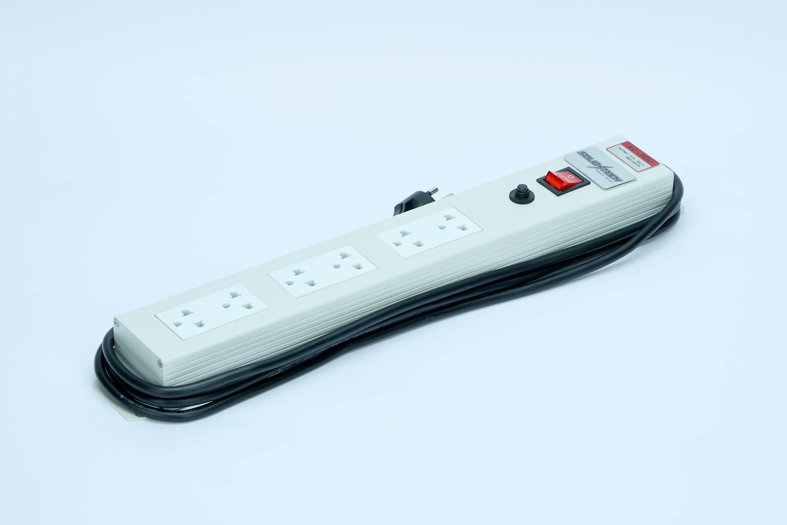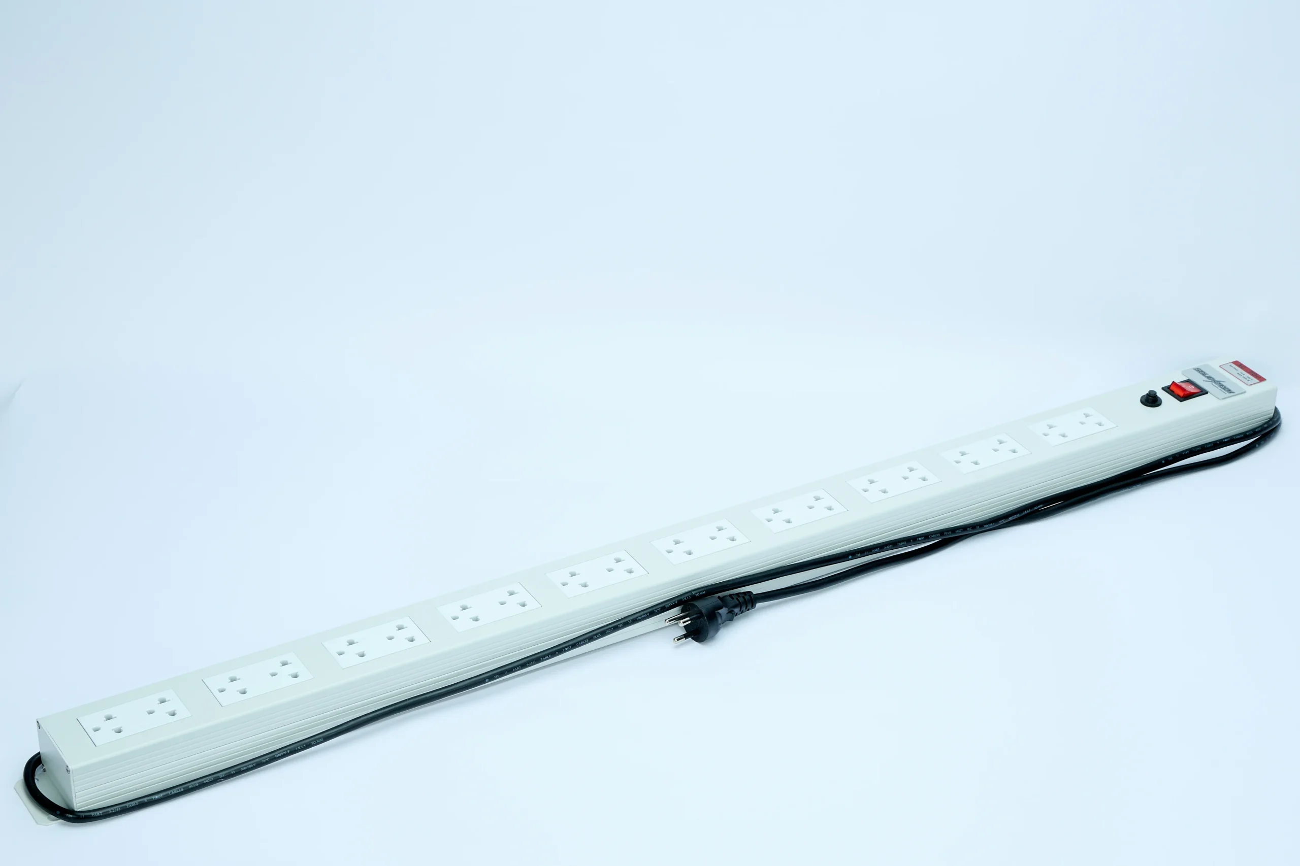 รางไฟทำจาก Aluminum Extrusion พ่นเคลือบสีเทาอ่อน หรือสีดำ มีสวิตซ์ควบคุมการเปิดปิด พร้อมอุปกรณ์ป้องกันไฟกระชาก (Line Suppression), อุปกรณ์ตัดกระแสไฟเกิน (Over Current) และป้องกันไฟฟ้าลัดวงจร (Short Circuit, Breaker)